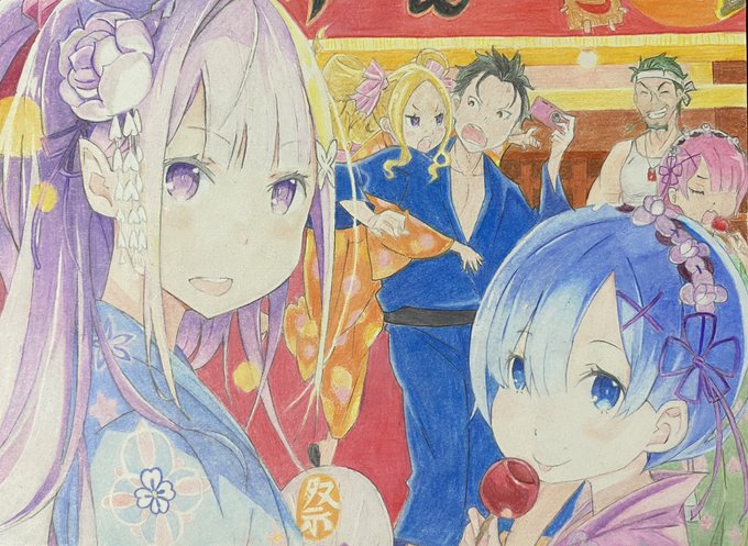 色鉛筆でリゼロを描きました! #リゼロ #模写 #色鉛筆