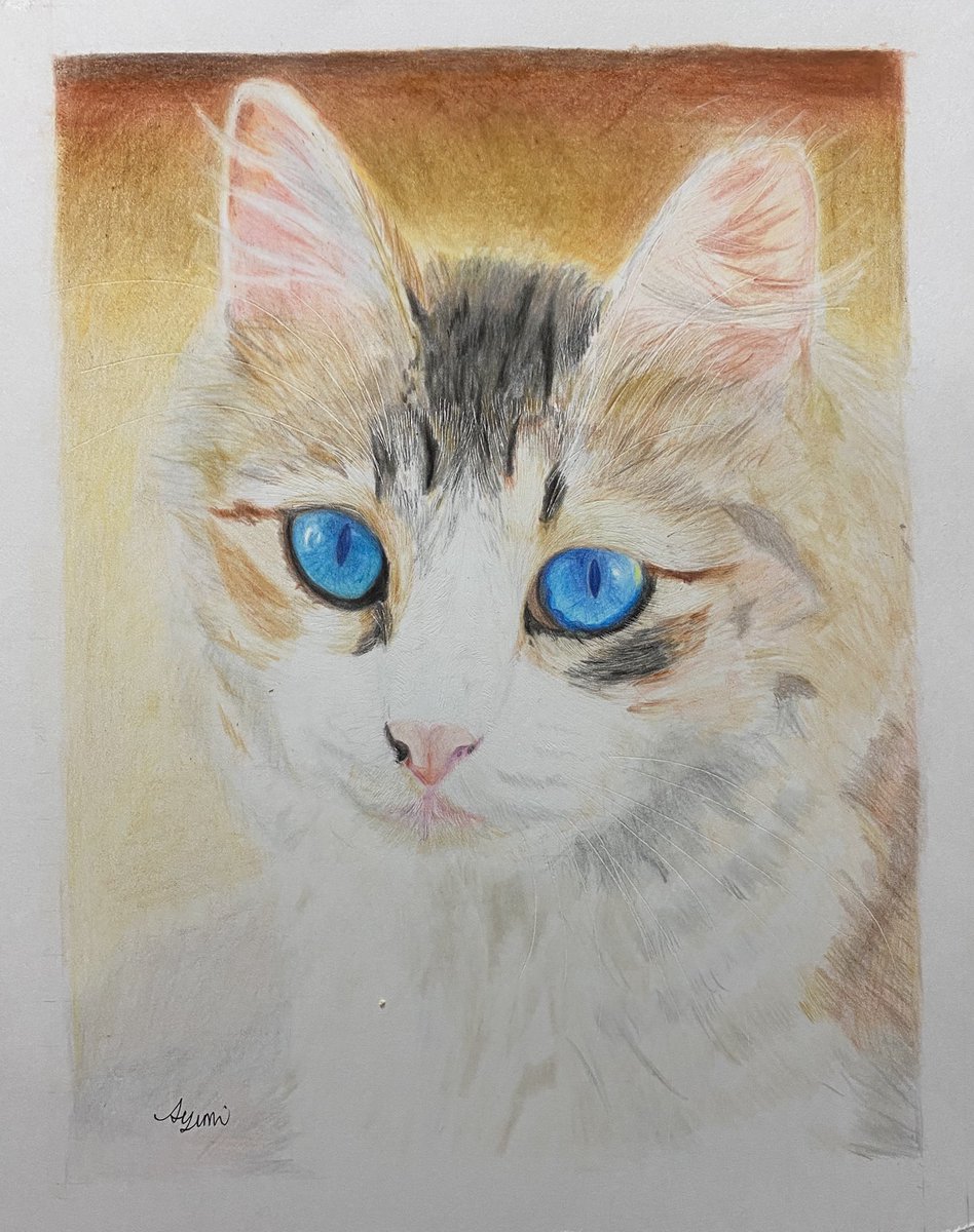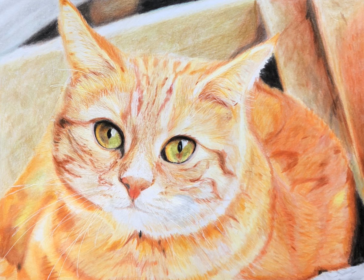 色鉛筆で猫を描きました! 毛並み感出すのが大変でした…