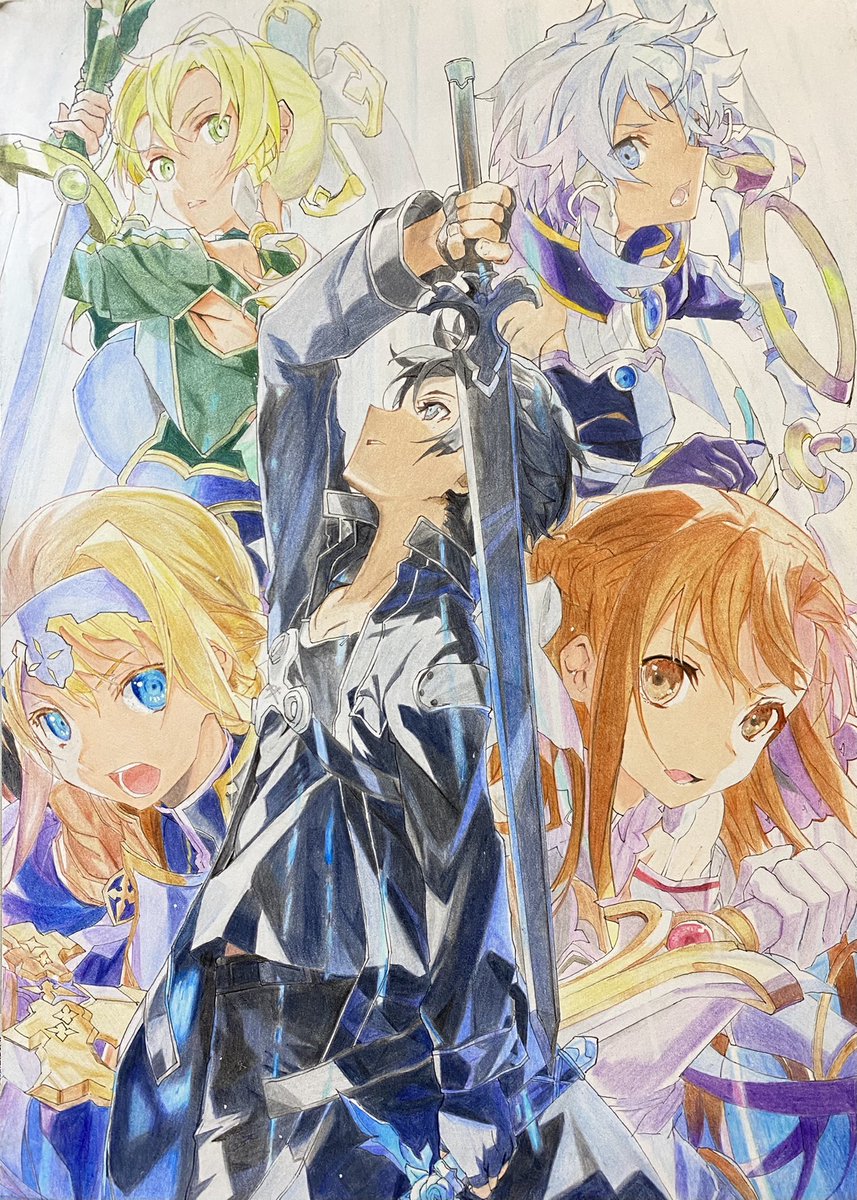 52 305 色鉛筆でSAOから、5人組を模写しました! #sao_anime #ソードアート・オンライン 20/09/23 21:00