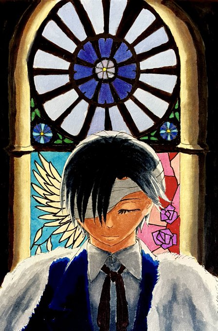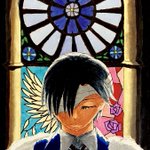 ミカエル様!!ピュア貴族天使!大好き!これからの活躍楽しみにしてます!過去絵ですが、祝わせていただきます!これからもどんどん他の貴銃士たちを巻き込んで振り回してね(?)😊 椅子からのお祝いでした! #ミカエル記念日2022 #1014R_FA