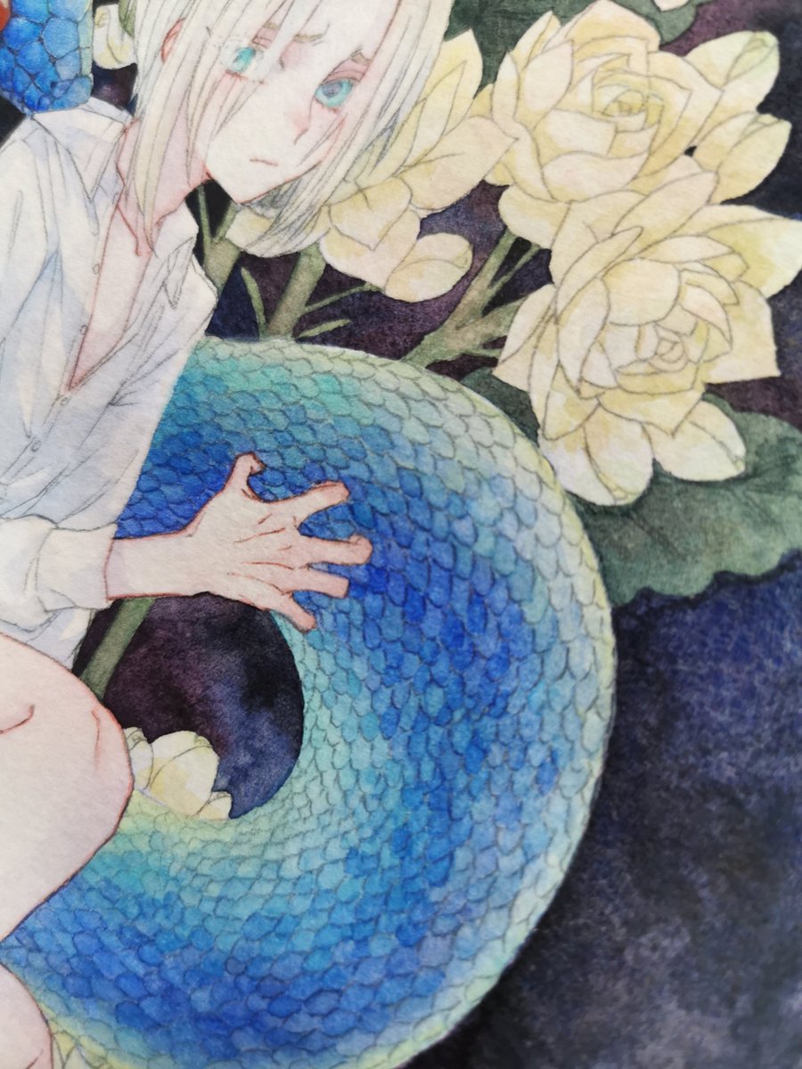 「いちご狩り」展 「いつも、そばに。」展 搬入して参りました🍓🐍 慎の大きな作品が 原画を観ないと色が全て消えてしまうくらい、ホワイトなアリスくんとシリルくん 色のグラデーションを原画で観て欲しい蛇さん なので、是非原画を観ていただければと思います! (原画で観てください!!!!!!)