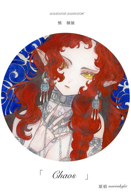 【個展開催のお知らせ】 「Chaos」 会期:2023/02/18~02/26 (※火曜日は定休日) 会場:marienkafer(@__marienkafer__)様 (東京) 新旧、様々な作品を展示する予定です。 よろしくお願い致します!