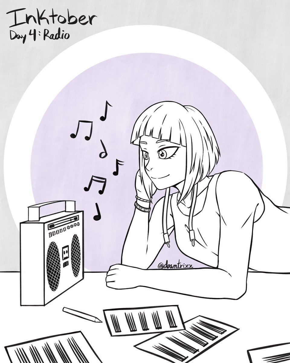 #Inktober Day 4: Radio. Jirou trying to get some inspiration for a new song she’s making. #inktober2020 #InktoberDay4 #jirou #jiroukyoka #kyoka #kyokajirou #mhafanart #bnhafanart