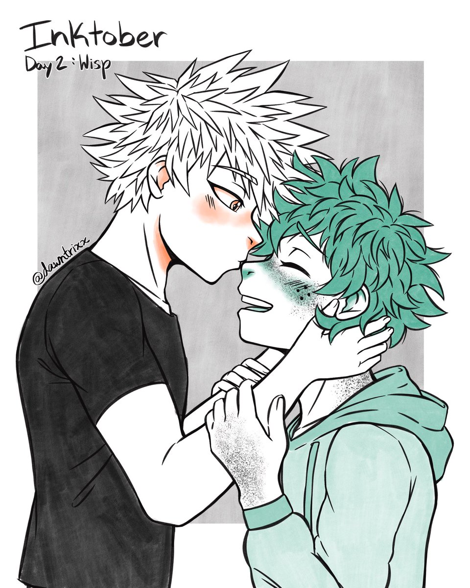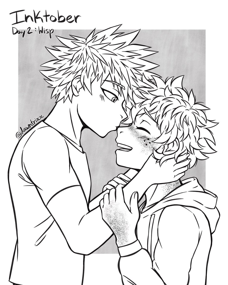 #Inktober Day 2: Wisp. I think me and Bakugou can agree that Deku won’t ever be able to tame those damn messy curls of his. #inktober2020 #bakudeku #bkdk #katsudeku #ktdk #mha #bnha