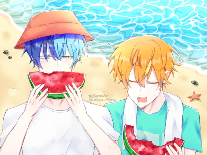 12 29 akty week day 2 - summer 🍉 they do be eating some watermelons #akitoyaweek23 #prsk_FA 23/07/19 01:23