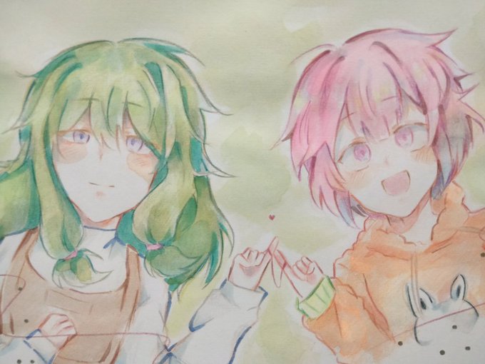 26 132 skipped day 5 and 6 bcs exams are coming so here's my last drawing for emunene week! 🩷💚 #emuneneweek2023 #Prsk_FA 23/05/01 04:41