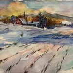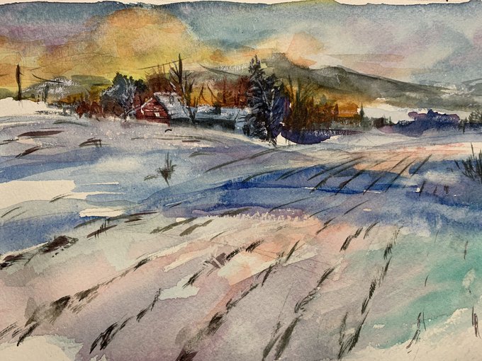 6 63 柴崎春道先生の模写。「夕日の雪原」 #watercolor #水彩画 23/01/03 22:33