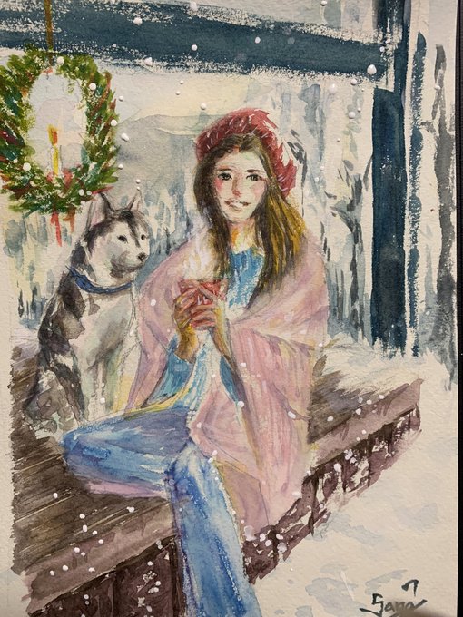 3 11 君はハスキーのはずだけどな。タロー。まったりしてるねー。今日はオリジナル描きました。 #水彩画 #watercolor 23/01/04 16:59