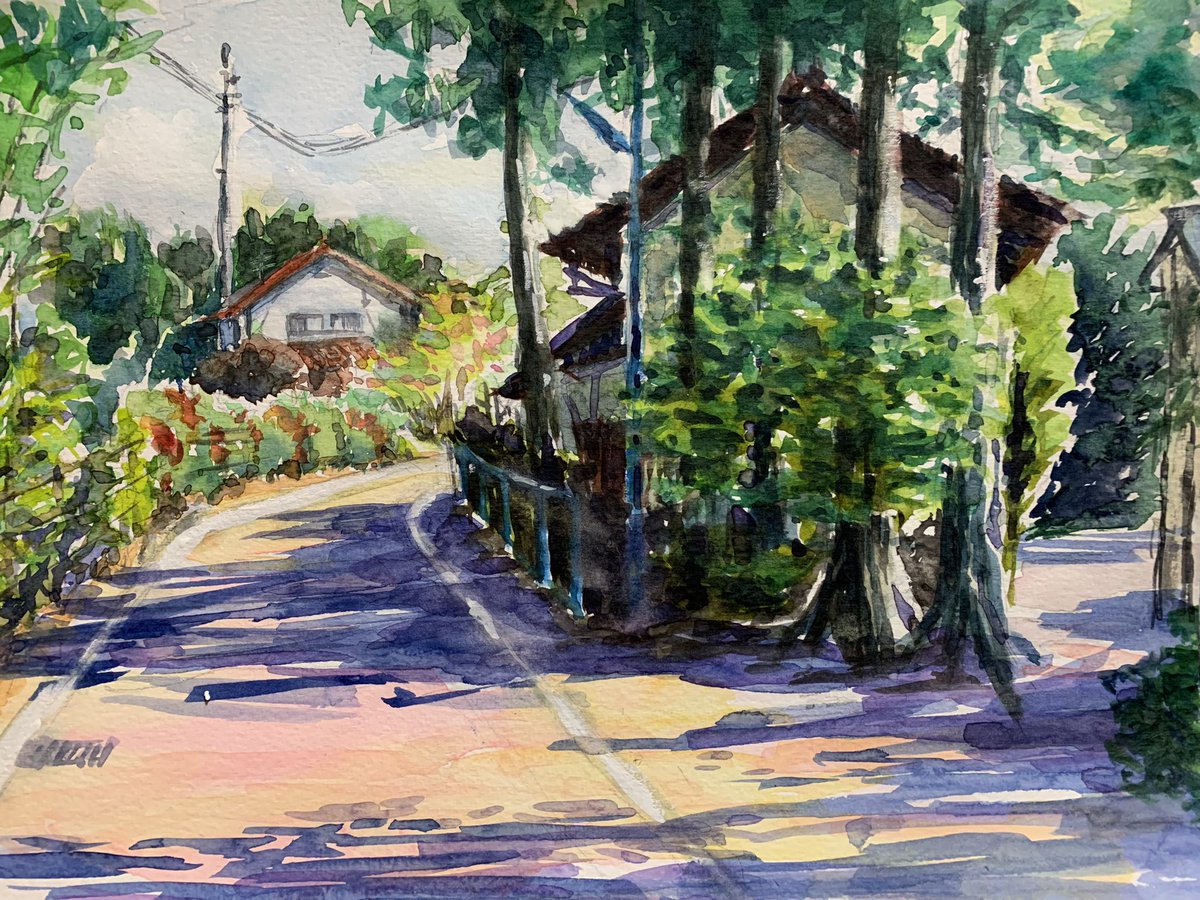 秋田の岩見ダムへ向かう途中の道です。 #watercolor #透明水彩 #水彩画 #秋田