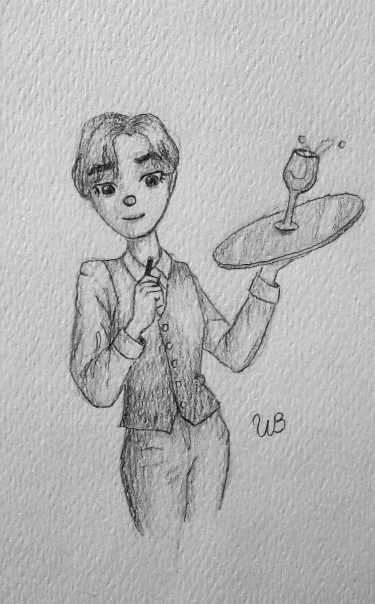 Congratulations @silveryoon_ for your 9.5k followers!! You deserve it and even more 🥺 Here's the #dtiys 🎆 of your cute waiter Taehyung 💕 #bts #btsfanart #Bts_Dynamite #taehyung #taehyungfanart