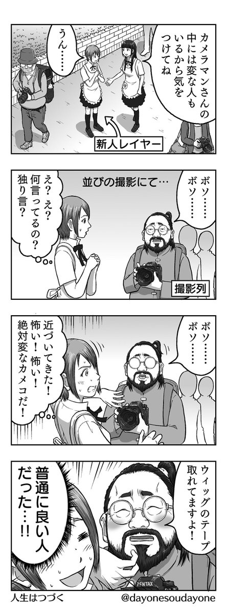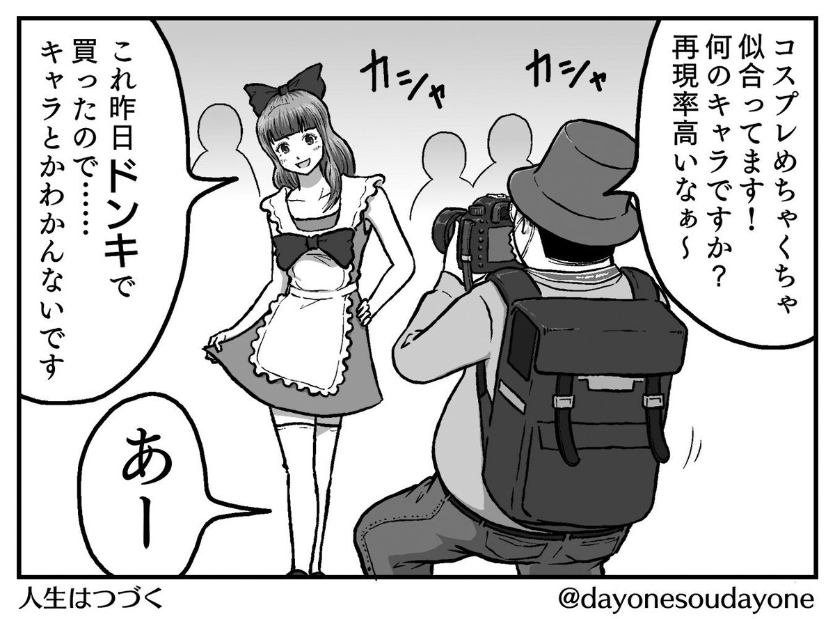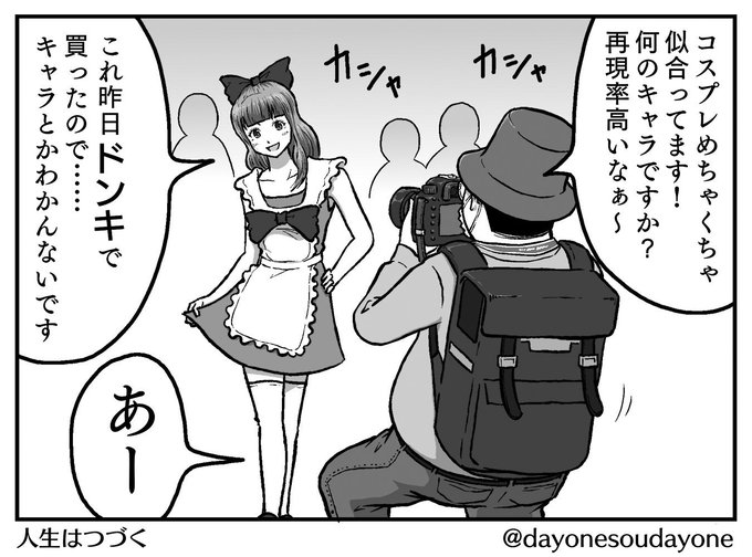 846 2191 コスプレイヤーの「ちょっと待ってくださいね」で野良カメコが思いがちなこと…という漫画である。何度経験してもこう思ってしまう私は病気なのである。 19/05/20 22:59
