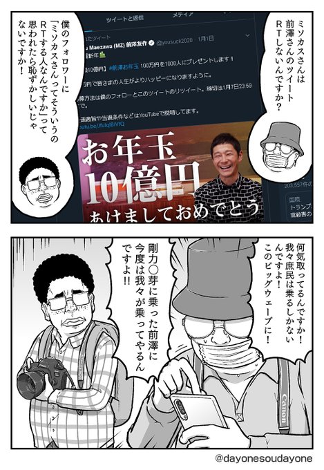 108 285 前澤お年玉企画におけるハイアマのミソカスさんと野良カメコの思想の違い…という漫画である。 20/01/05 12:29