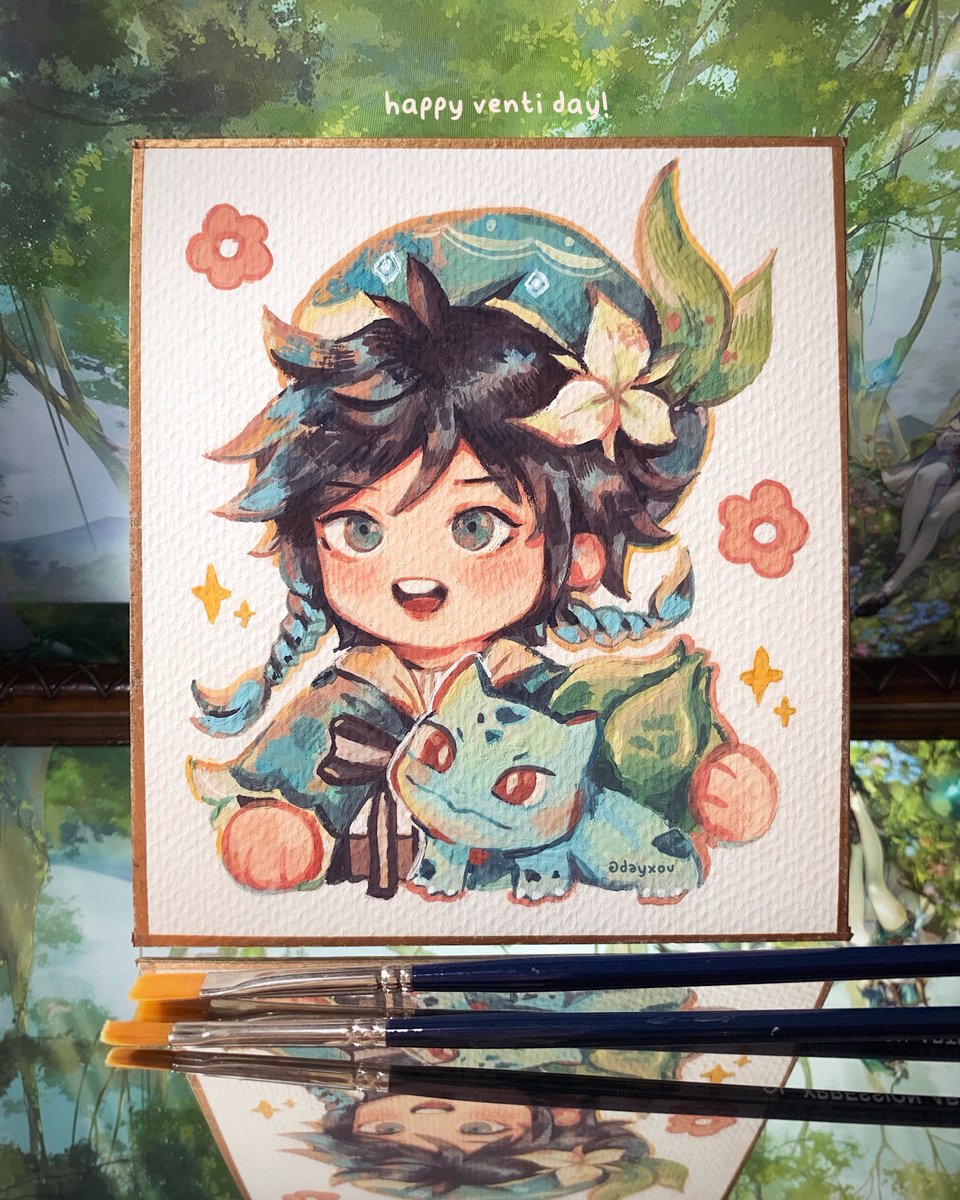 happy venti day!! 🍃 first time shared tradi painting here ^^✨ #原神 #genshinimpact #venti #ウェンティ生誕祭2022