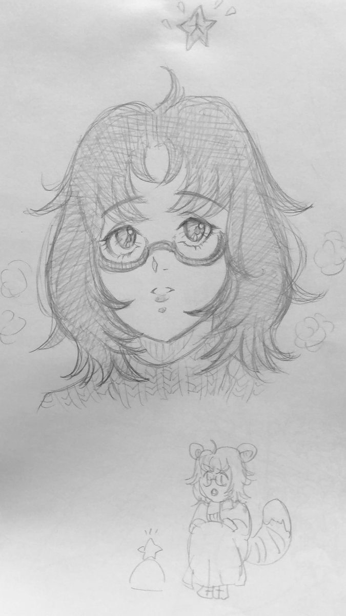 6 41 #アナログイラスト #鉛筆イラスト #芸術の輪 #絵描きさんと繋がりたい 「化け狸の天体観測」 22/02/09 02:50