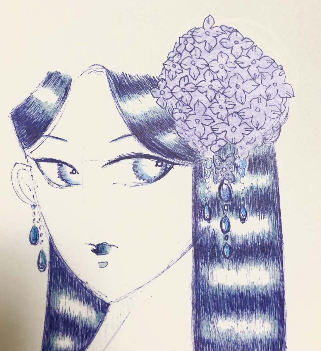 3 58 イラスト「飾り紫陽花」 #芸術の輪 #ボールペン画 #アナログイラスト #紫陽花 #絵描きさんと繋がりたい 22/06/19 22:22