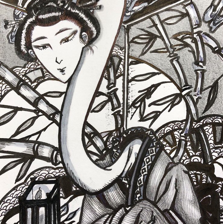 イラスト「令和の芸妓さん」 #アナログイラスト #芸妓さん #芸術の輪 #絵描きさんと繋がりたい