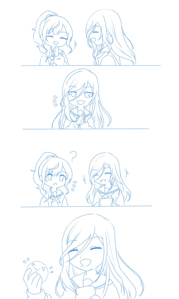 43 77 #Prsk_FA 시즈마후 💧❄️ 먹여주는거 그려보고 싶어서 그렸는데 ❄️는 맛을 모르는데도 맛있다고 말할거 같다 마지막은 둘을 바라보고 있던 미야죠 학생들=(내 모습)을 그렸다 22/10/09 02:09