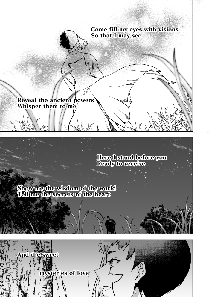 半年以上前に書いて忘れてたのを発見発掘。 昔のゲームの曲だけど歌詞がゲンちゃんから干空ちゃんへっぽいなって思って書いたやつ。です。 「石の荒野を夢と欲望を抱いて私は一人でやってきました」
