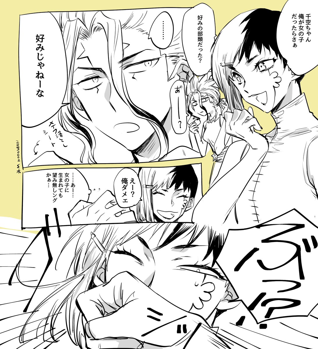 135 983 メンタリストにそういう勝負挑んじゃう? 樽に手足突っ込まれるゲンが好きぴです。 ゲンにジュネーブ条約って言って欲しくて描いた漫画。 23/06/12 22:57