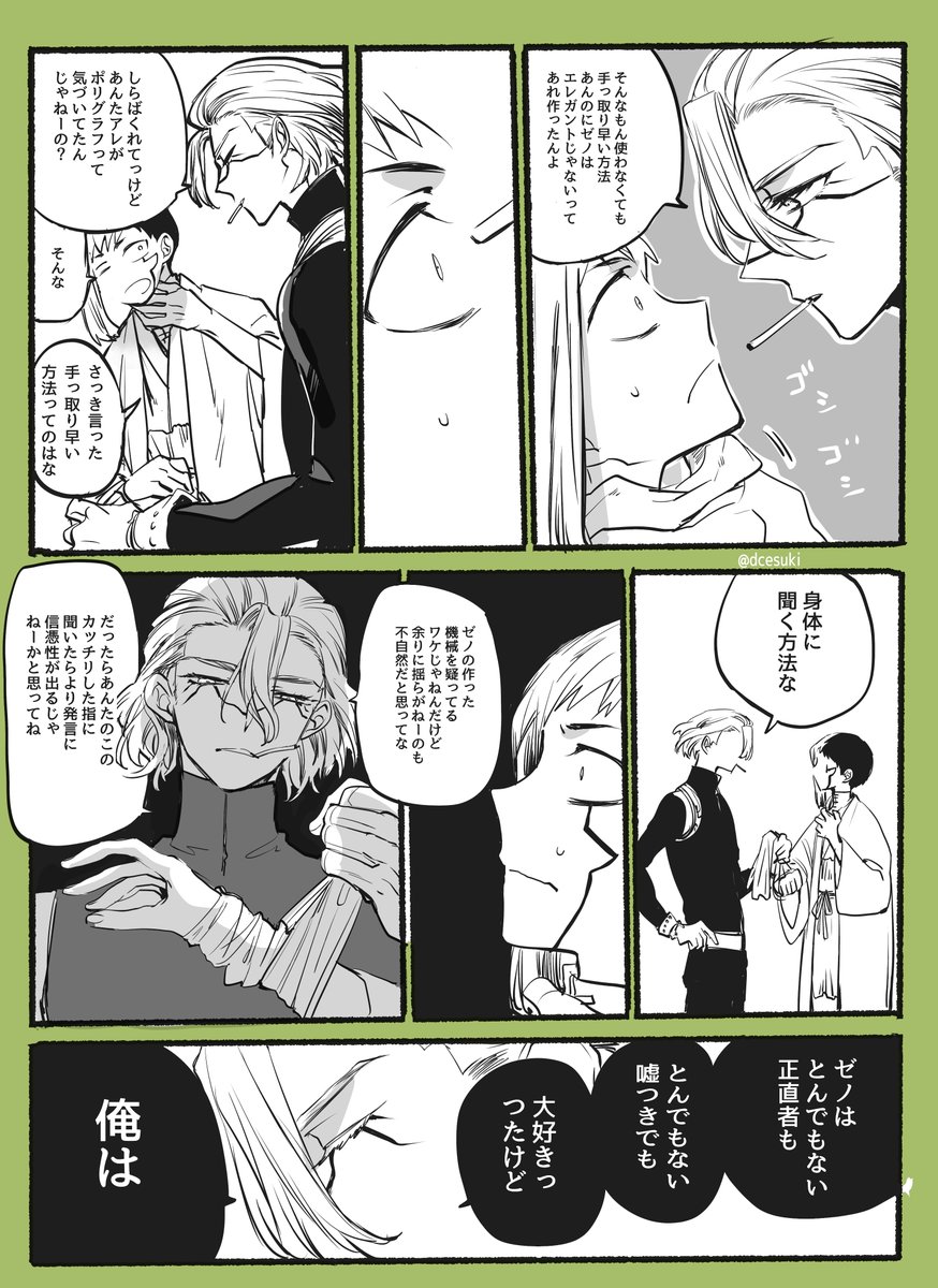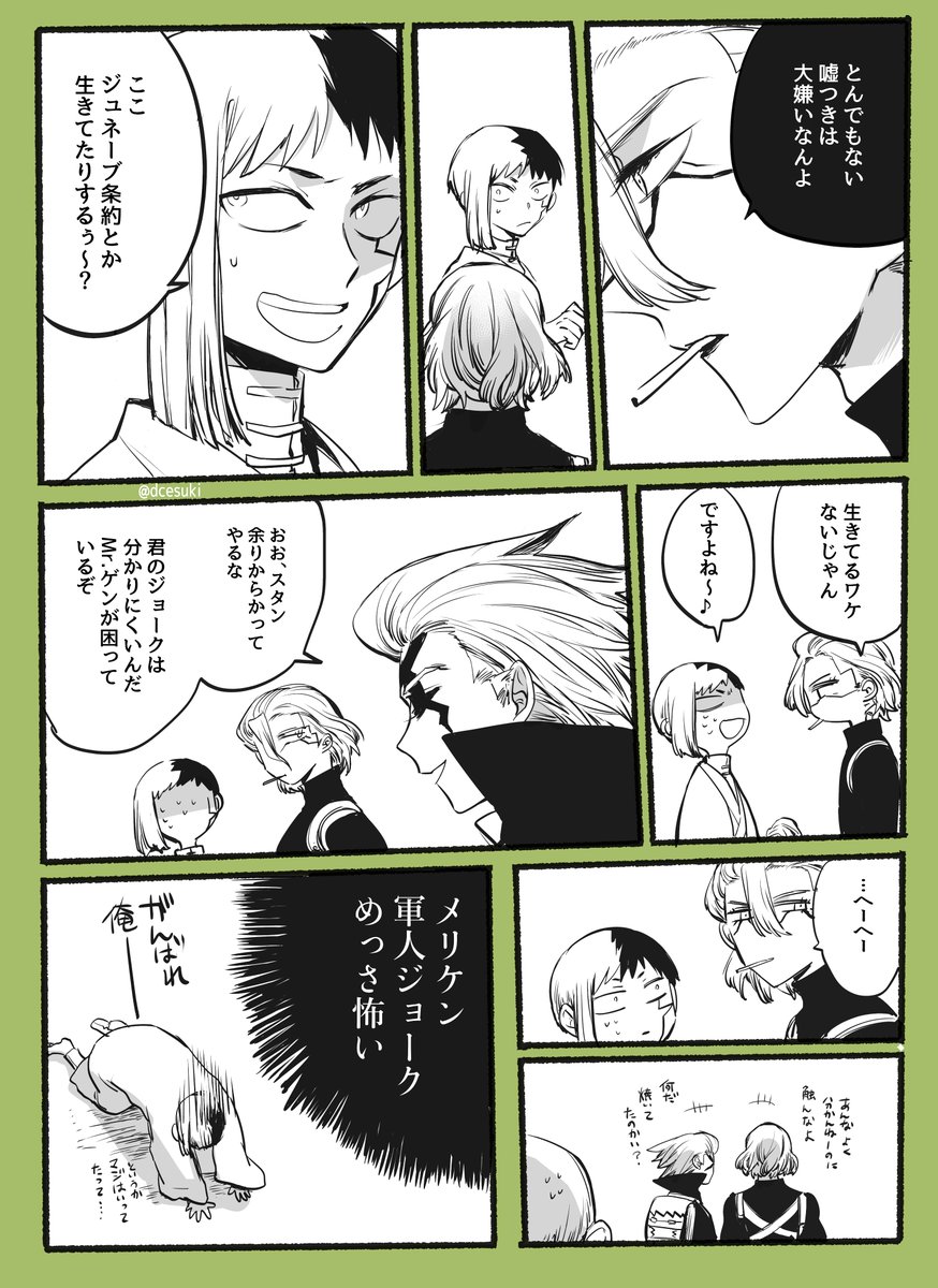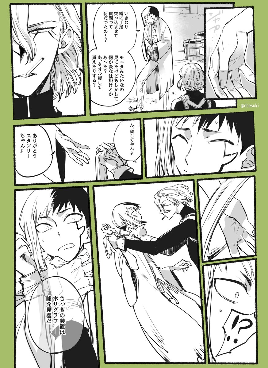 メンタリストにそういう勝負挑んじゃう? 樽に手足突っ込まれるゲンが好きぴです。 ゲンにジュネーブ条約って言って欲しくて描いた漫画。