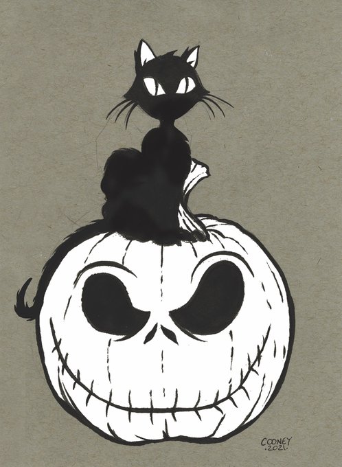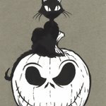 Happy Halloween! 🎃🐈⬛💀Pen and ink on toned paper. #halloween #jackskellington #blackcat #nightmarebeforechristmas #trickortreat #penandink #linedrawing #illustration #sketch