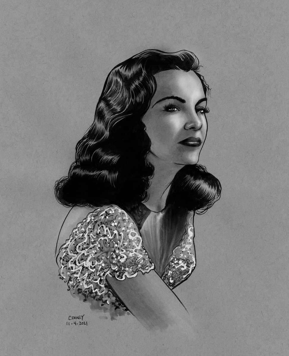 Noirvember Day 4 Ella Raines from Phantom Lady, mixed media on toned paper. Phantom Lady is a 1944 American film noir directed by Robert Siodmak and starring Franchot Tone, Ella Raines, and Alan Curtis. #Noirvember #penandink #portrait #illustration #lineart #femmefatale