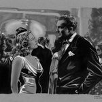Tyrone Power and Grace Kelly as Ballroom dancers—pen and ink, #screentones via #ClipStudioPaint #penandink #gracekelly #tyronepower #ballroomdance #vintagegown #tuxedo #pendrawing #blackandwhite #winsorsablebrush #indiaink #rotringinkpen #illustration