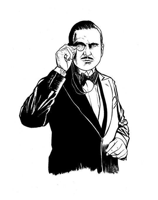 Man with a monocle. Pen and ink 🖋 🧐 Inked with a #sablebrush #rortingpen #unifineliner #bowtie #graphicnovel #comicpanel #inkart #lineart #penart #illustration #1920s #blackandwhite #monocle #penandink #doodle #sketch