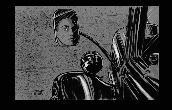 Side mirror reflection of femme fatale—pen and ink. #noir #FILM #FILMNOIR #NOIRALLEY #LINEART #ILLUSTRATION #PENANDINK #INKDRAWING #PENDRAWING #chiaroscuro #blackandwhite