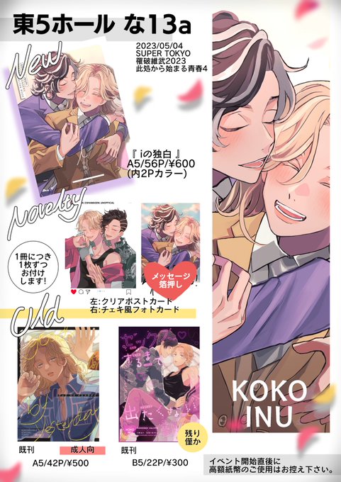 41 196 【お品書き】 5/4 TOKYO罹破維武2023 此処から始まる青春4 東5ホール な13a ジャングルの沼地 当日はよろしくお願いします! 23/05/02 11:21