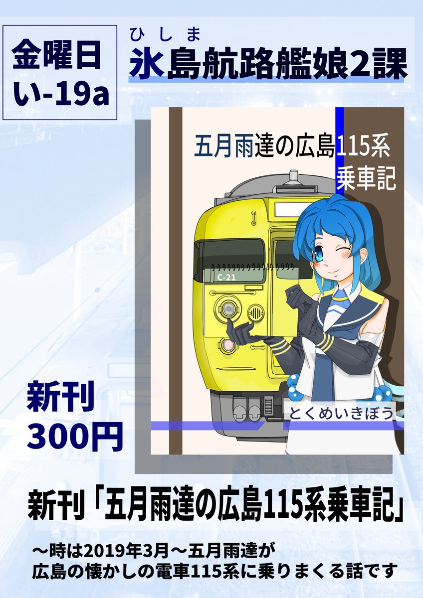 いよいよ明後日になりましたコミックマーケットC101ですが、「五月雨ちゃん達が広島のボロい電車こと115系に乗りまくる話」を頒布いたします。 一日目(金)「いー19a」でお待ちしております! webcatalog-free.circle.ms/m/Circle/16801…