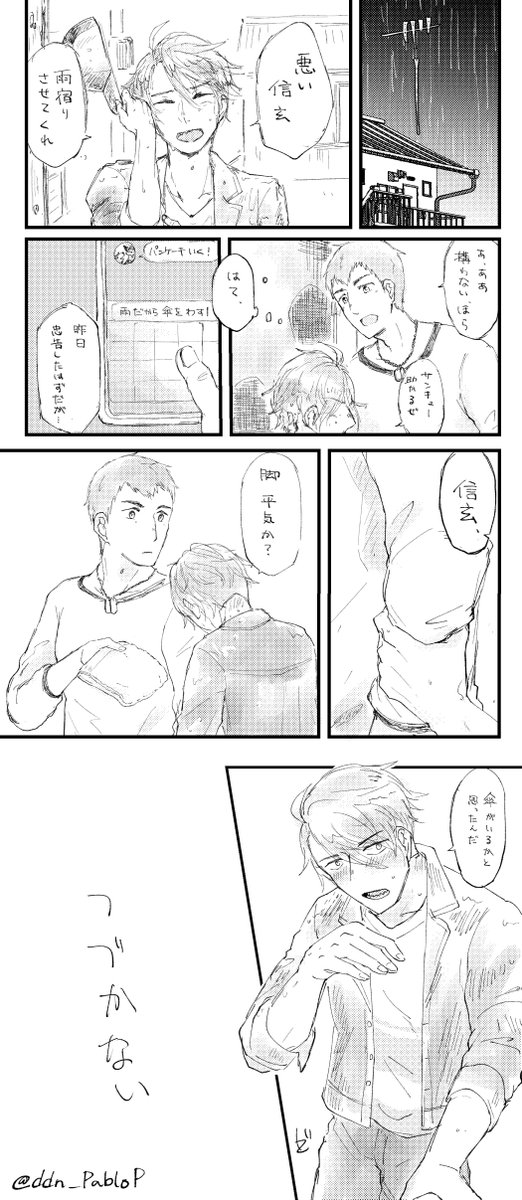 8 13 第9回 #握信ワンドロライ 使用お題【雨宿りする】 3.5時間くらい 雨の日に痛む脚とSYLの歌詞を魔融合した(不完全燃焼) 22/11/20 20:00