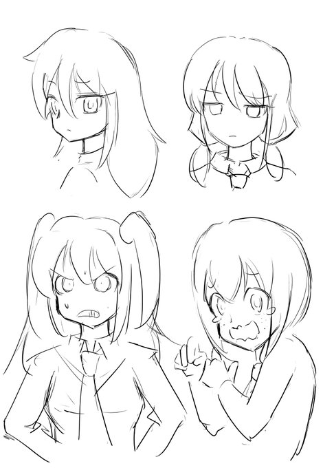 昨日絵チャやってて、自分の絵の表情のパターン少なすぎて全然面白味が無いなーと思ったので、いろんな表情描く練習中