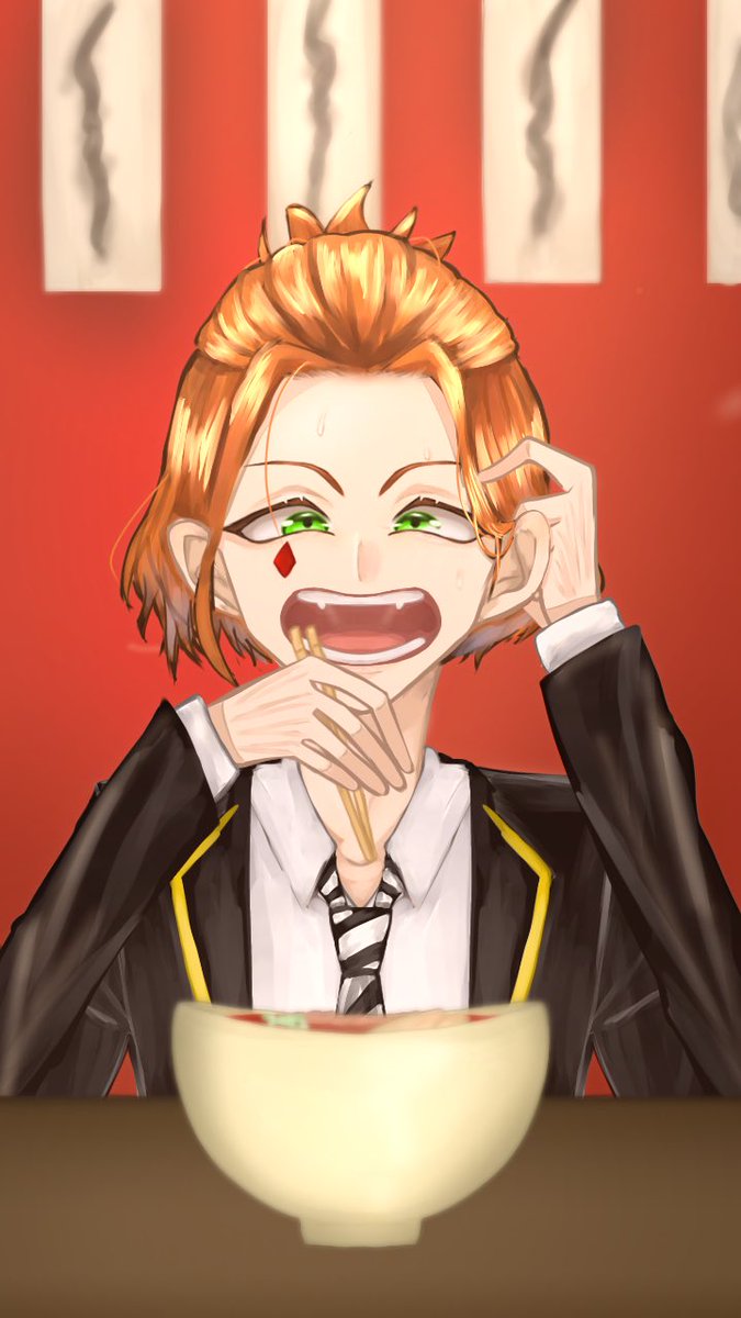 久さしぶリにツイステにはまったのでオリキャラで寮服をかきました。 あと幸いラーメンがっつくケイトくんをかきました。#絵師さんと繋がりたい #ツイステッドワンダーランド #オリキャラ #イラスト