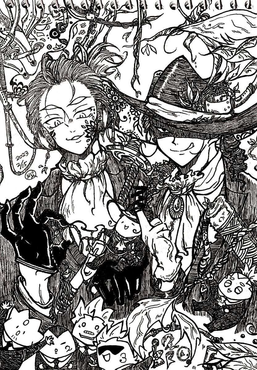 14 159 #2bropics むっちゃ大遅刻した0213絵。 初めてアイビスで線画抽出っていうのをして鬼の様なゴミ取り作業してました…許してください。 23/02/15 22:43
