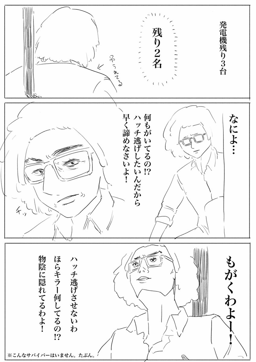 ドワ「ごめんみんな!仕事で遅れてしまって、盛り上がってるかな…、」 ババ「グッ👍」 ドワ「(来るとこ間違えたー!)」 #dbd