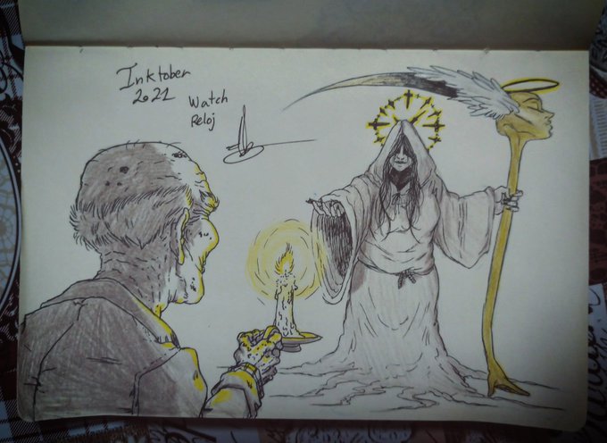 #inktober2021#dia8#watch#reloj#art#draw#colors#spooky#haloween en esta ocasión se nos ocurrió mezclar un par de traducciones más, la principal es el reloj, pero habían algunas más como "centinela, guardián, mirar, vela" Etc y como idea se nos ocurrió esta escena ❤