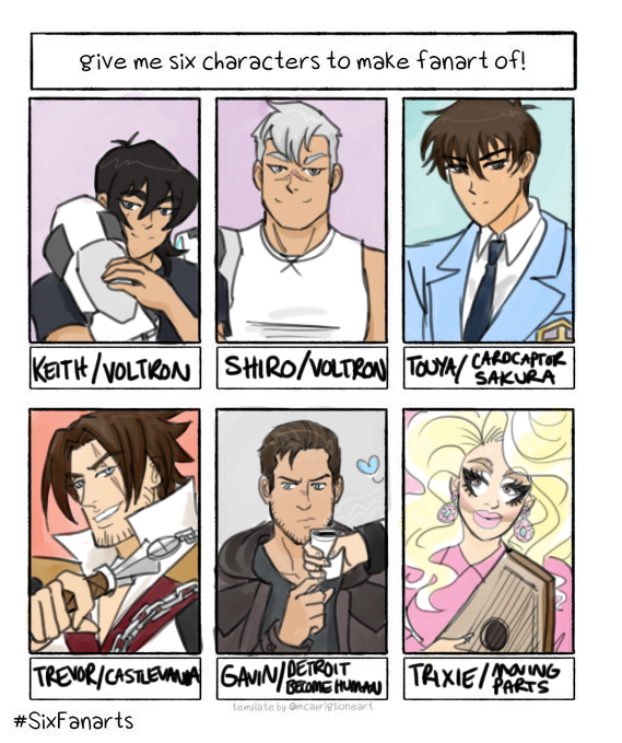 thanks everyone so much for the suggestions!! this was so fun & i really needed this. #SixFanarts