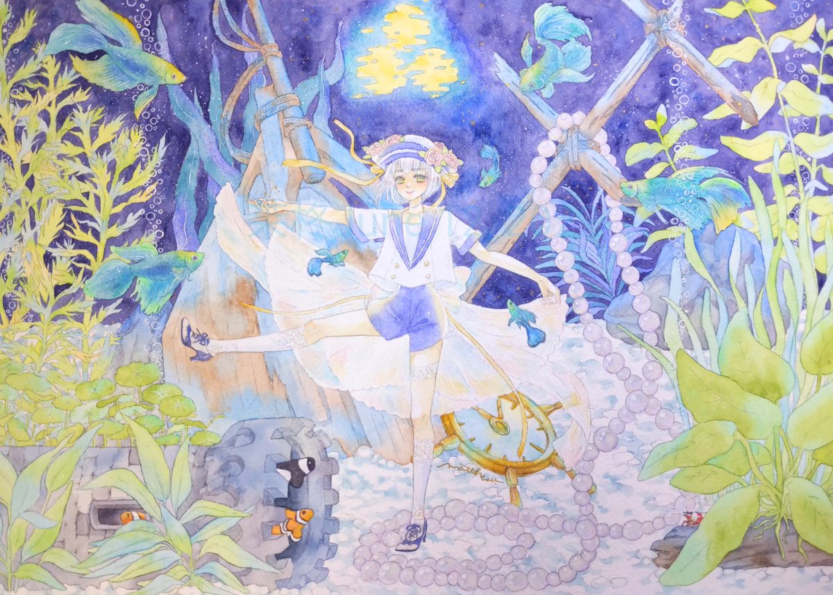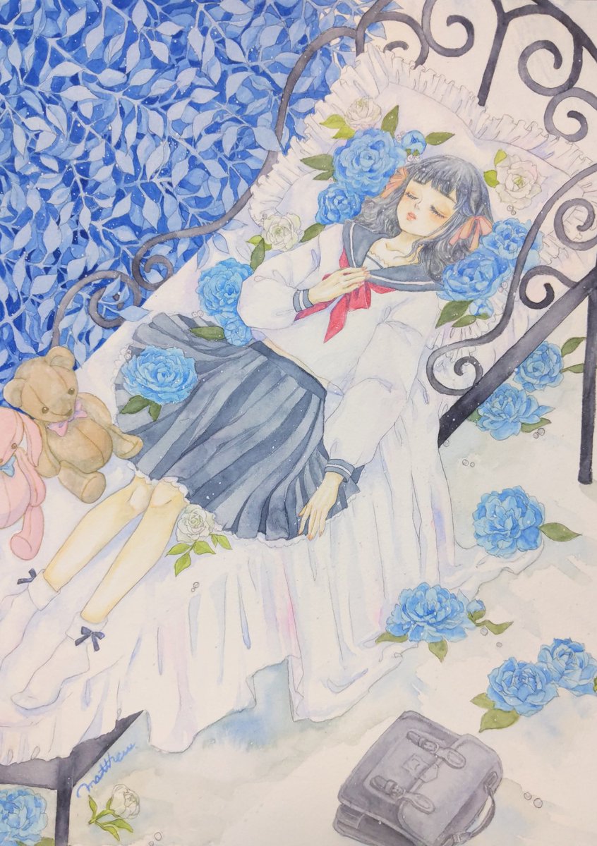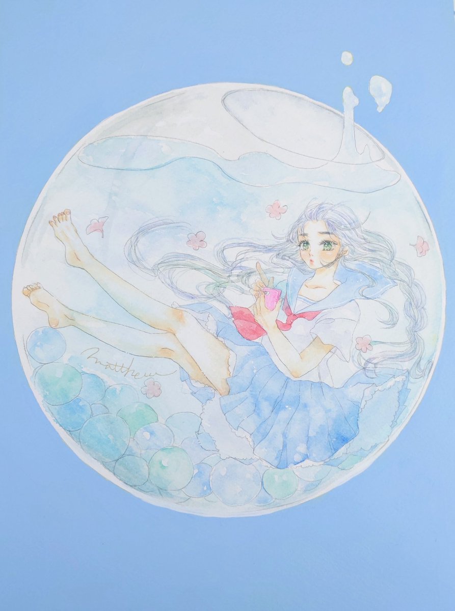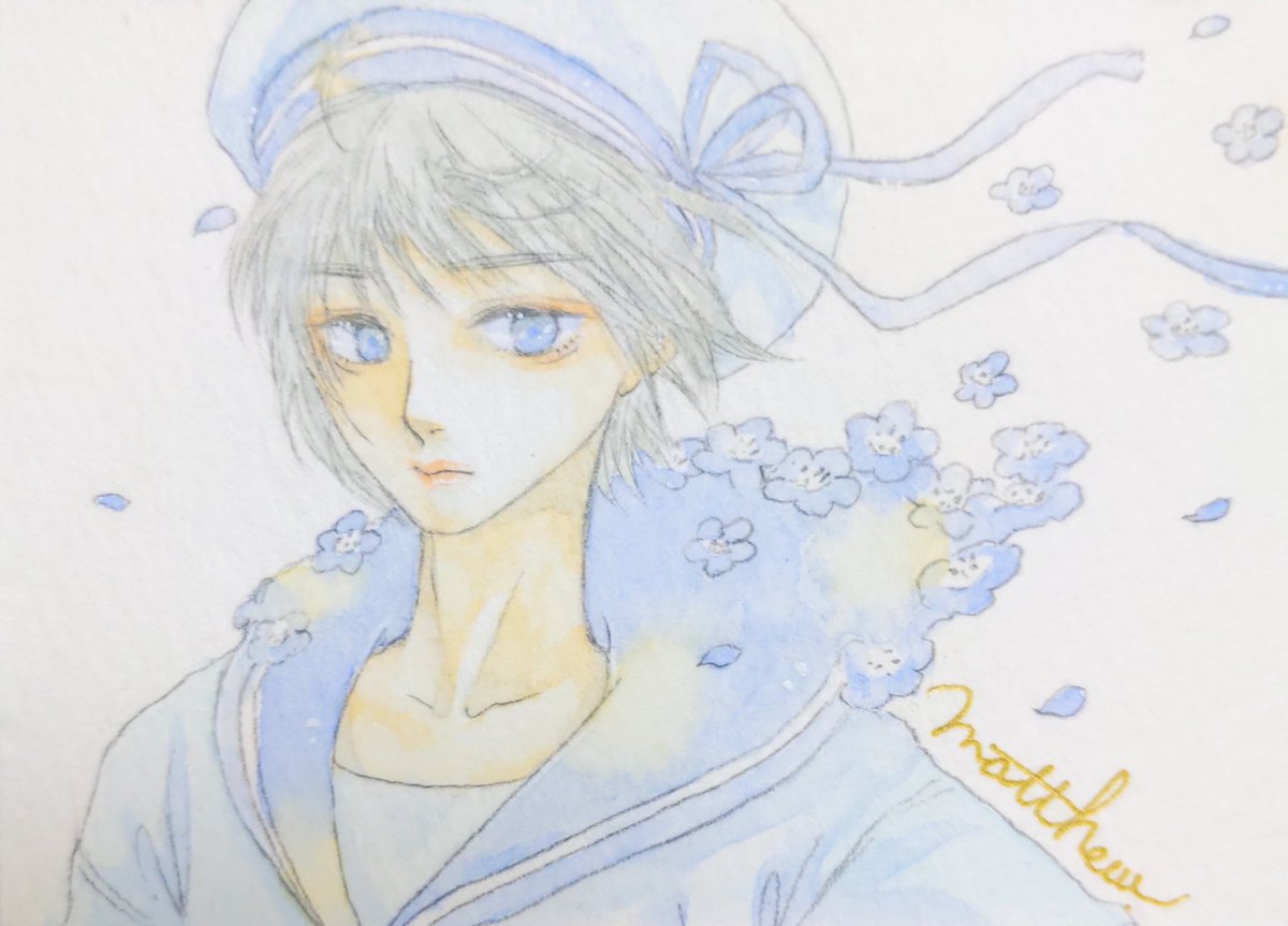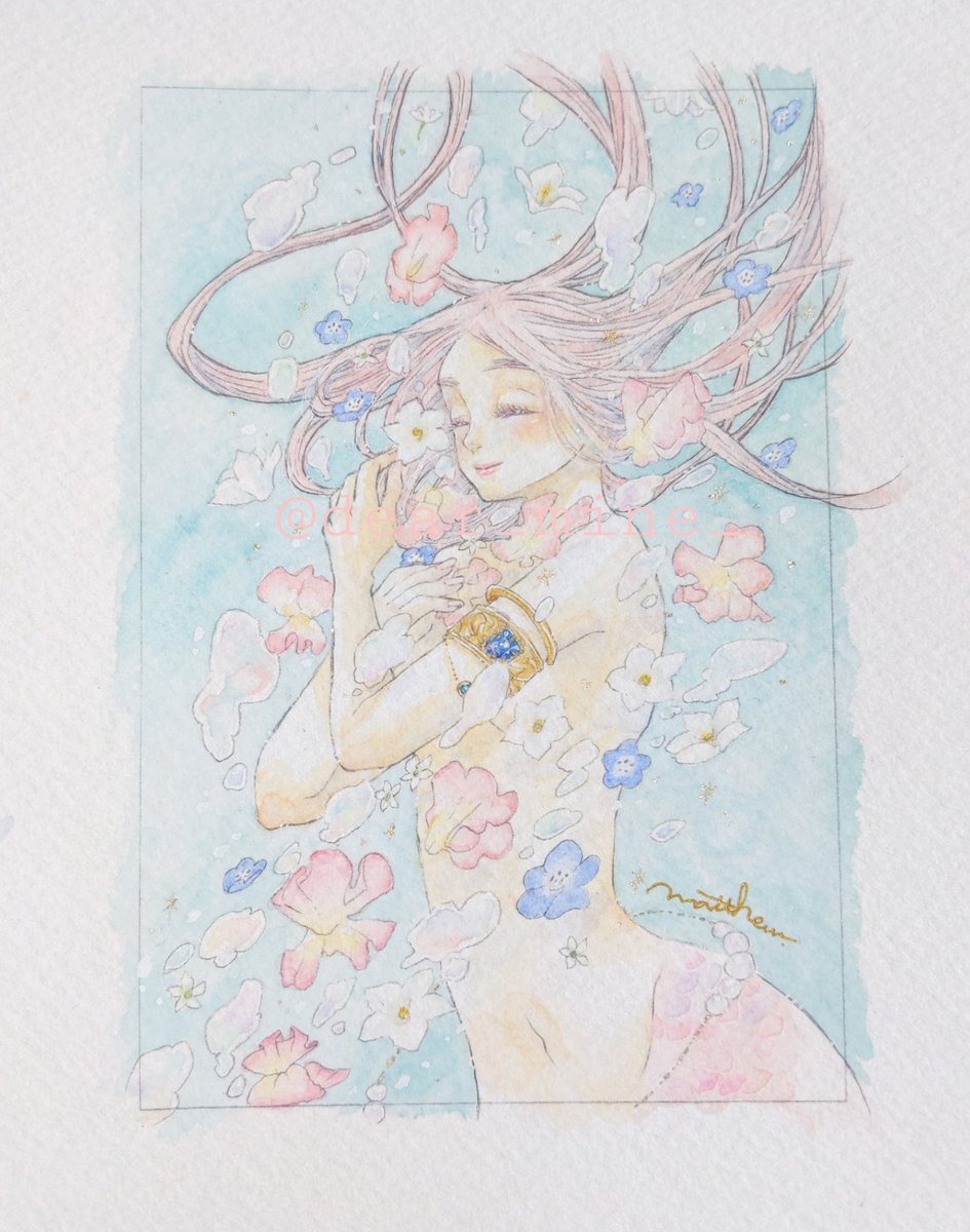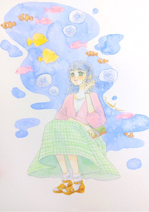 透明水彩で主に女の子の絵を描いています。不透明色の透明水彩が好きです。 #ゴールデンウィークSNS展覧会2022
