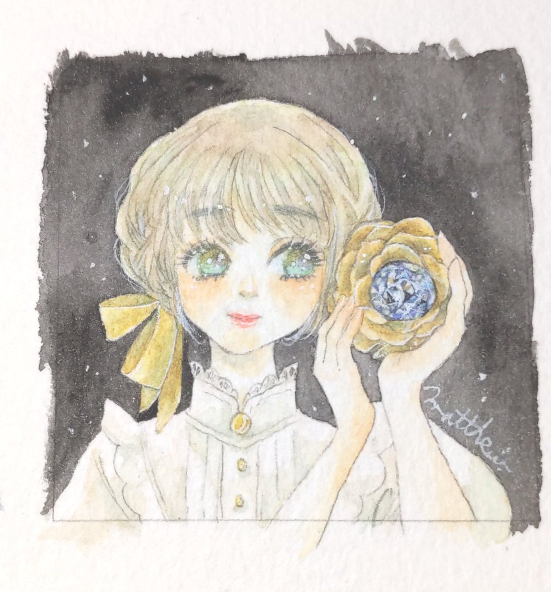 #一次創作絵師拡散フェス01 透明水彩でキラキラ芯の光る女のコを描いています~!! 大体楽しい楽しい言いながらお絵描きしています!