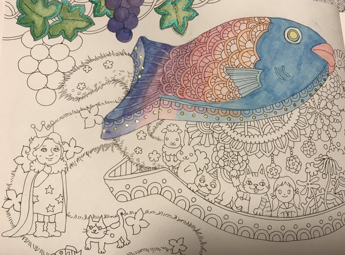 井田千秋さん(@dacchi_tt)の線画を塗らせて頂きました😊とても楽しく塗れました。来年の夏は海に行けたらいいなぁ。コロナが早く収束しますように。 #大人の塗り絵 #ロイヤルターレンスヴァンゴッホ #色鉛筆