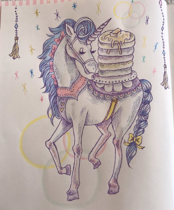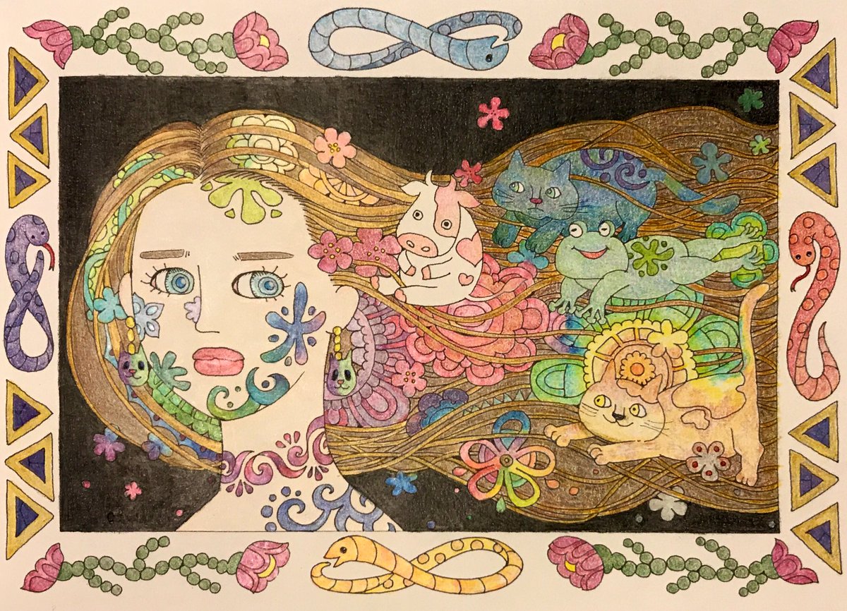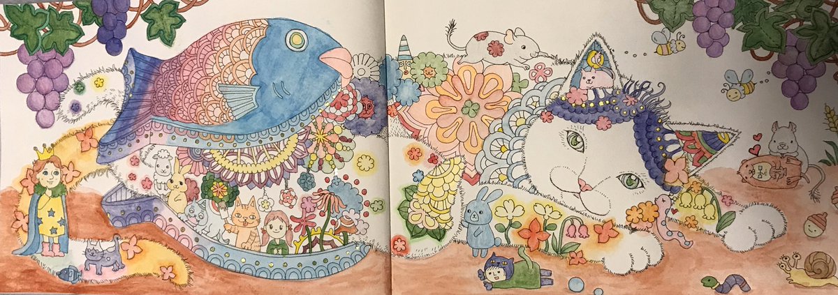 #どうぶつたちのFantasySeason より6月のページが完成しました😆今月中に塗り終わって良かった💦相変わらずのゴリ🦍塗りでテカテカですが楽しく塗れたので良し😁 #大人の塗り絵 #カリスマカラー #ステッドラーカラト #色鉛筆