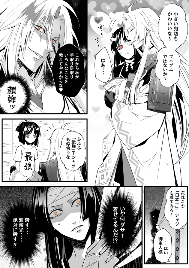 【陰陽師】へいわな頼光+鬼切(その9) ※キャラ崩壊注意※ いつもの光切ですがせっかくなので・・・陰陽師三周年おめでとうございます! #陰陽師三周年 #守りゆこう三周年 @OnmyojigameJP