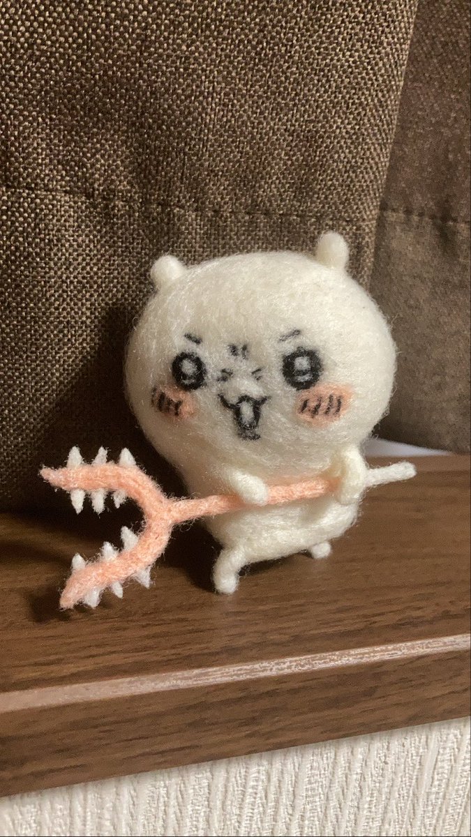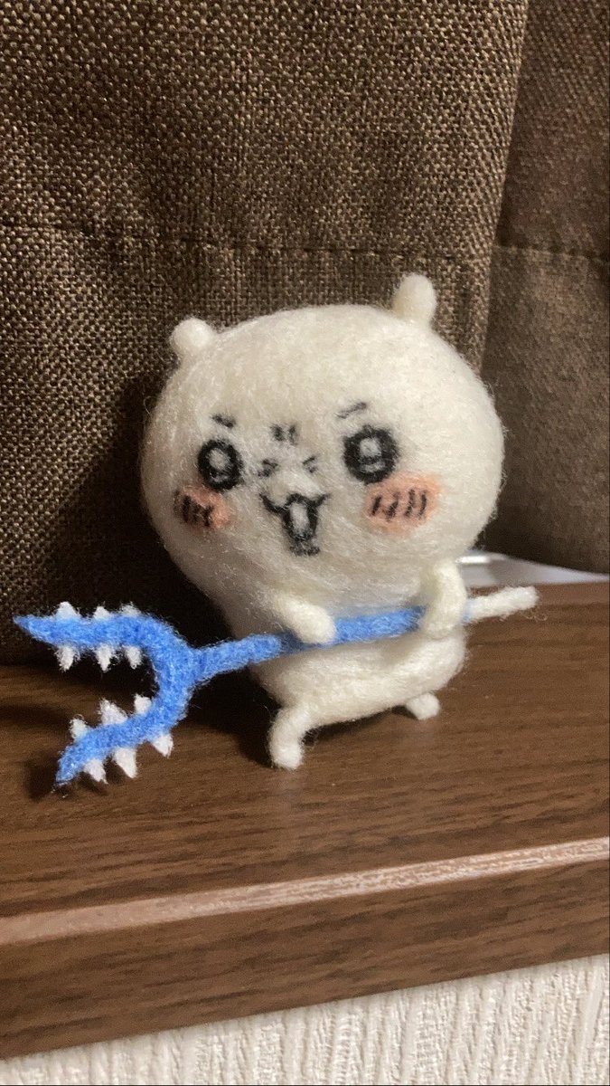 一番最初に作ったちいかわちゃんが ホントにホラー……… これに比べたら大分マシになった😑 #ちいかわ #羊毛フェルト #羊毛フェルト失敗