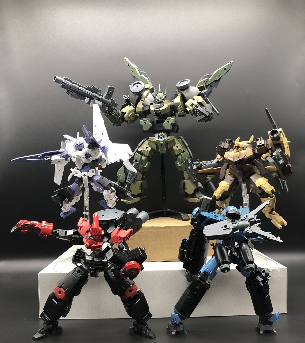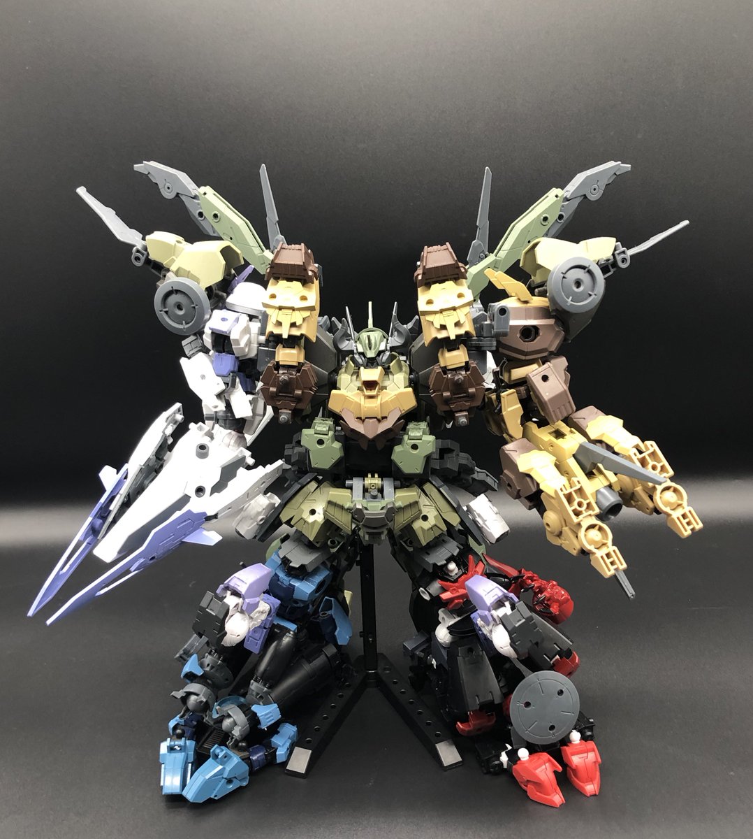 #30MM宇宙戦 #30MMバイロン軍 [イリスノヴァ]N65銀河で組織された〈タナトス部隊〉の5機のEXMが合体して完成する決戦用機体。 5機のEXMを連結する事で生まれる膨大なエネルギーによって攻撃、防御ともに優れた機体となっている。 大型のウイングによって宇宙においても優れた機動力を発揮する。