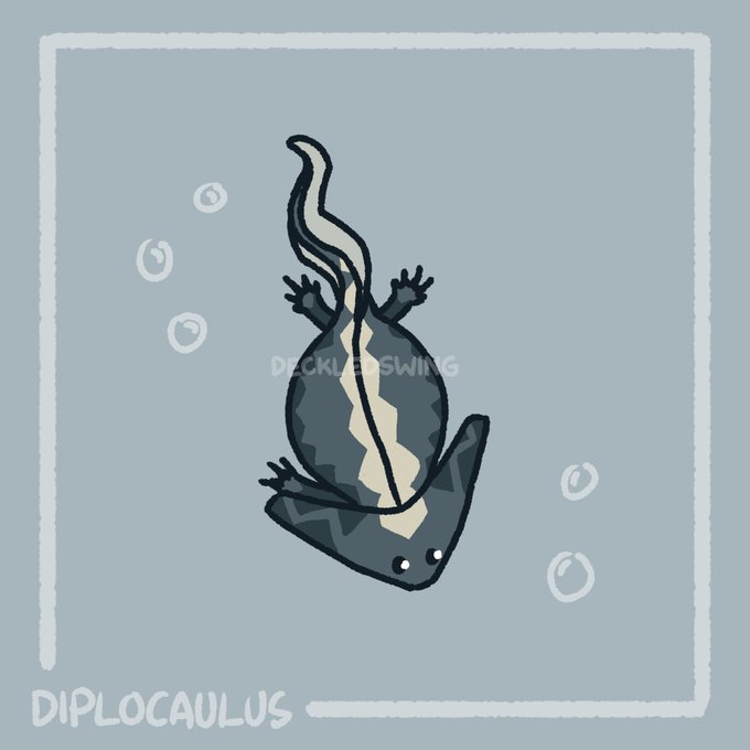 my attempt on a male metoposaurus, a triassic amphibian, chilling with his smol boyfriend #metoposaurus #paleoart