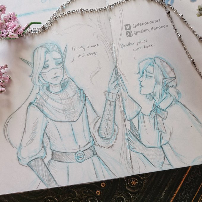 Seldom I've drawn my dnd ocs interacting w/one another & figured long overdue. Despite being planes apart, my cleric won't stop in trying to find his sibling & save him from w/e troubles he is in. #art #sketch #drawing #OC #DnDcharacter #dndart #dungeonsanddragons #cleric