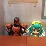 🍙ともかくにゃんこさんもSIKIRIアパートに入るコメ。今日はもう遅いコメ 🦝…だから僕は猫じゃなくてタヌキだって言ってるのに… 🦗あれ?今日手に入れたSHODO-0の開封は? 🍙明日やるコメ…今日はもう寝る時間コメ… #夜のフィギュア撮影会