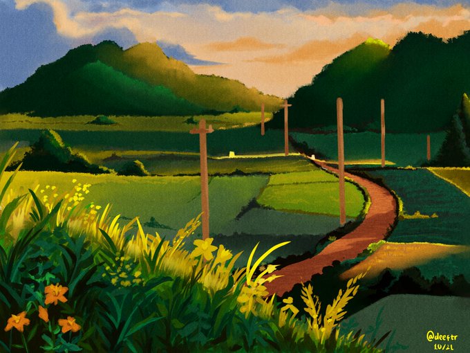 A scene from My Neighbor Totoro!! But I make it basking in the afternoon light 🌅 I can't get enough of Studio Ghibli movies and their magical landscape 😳 #Ghibli #GhibliRedraw #artidn #ArtistOnTwitter