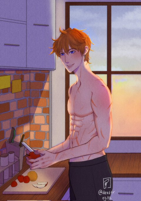 "Morning girlie, stay there I'll prepare some fruit for you" #childe #genshin #genshinimpactfanart #illustration #原神